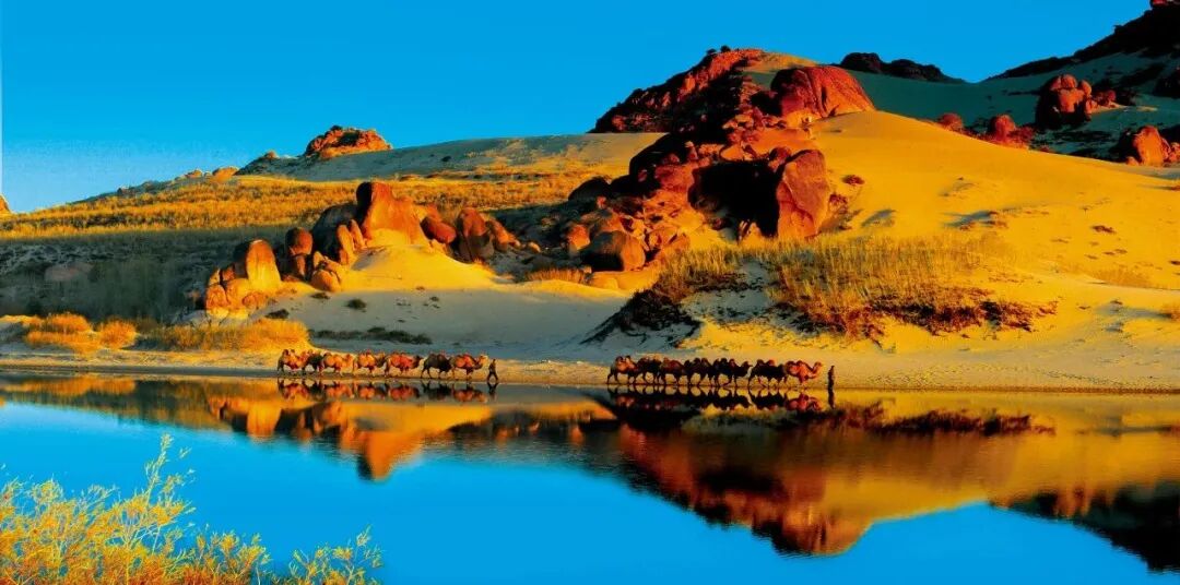 白鹭湖边窃窃语,斜阳瑟瑟照驼峰。