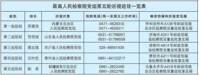 根据最高人民检察院党组统一部署,最高检党组第五轮巡视分别对内蒙古、山东、四川、贵州、新疆5个省级检察院党组开展为期两个月的常规巡视。10月14日,最高检党组召开第五轮巡视动员部署会,其后开展了为期两天半的巡前培训。近日,各巡视组完成巡视进驻。