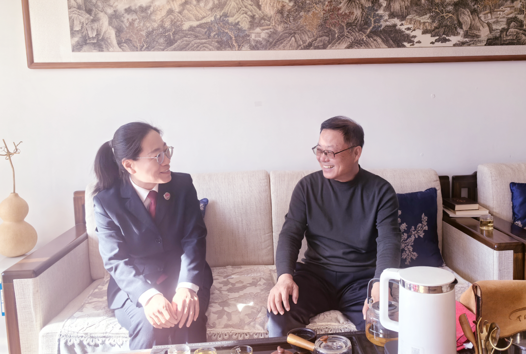 在老干部家中,刘亚娟与老干部促膝长谈,细致询问其身体、生活和家庭情况,叮嘱做好冬季保暖与健康防护,有困难及时向组织反映。同时汇报2025年松山检察在服务大局、司法办案、队伍建设等方面的工作成效,真诚征求对检察工作高质量发展的意见建议。